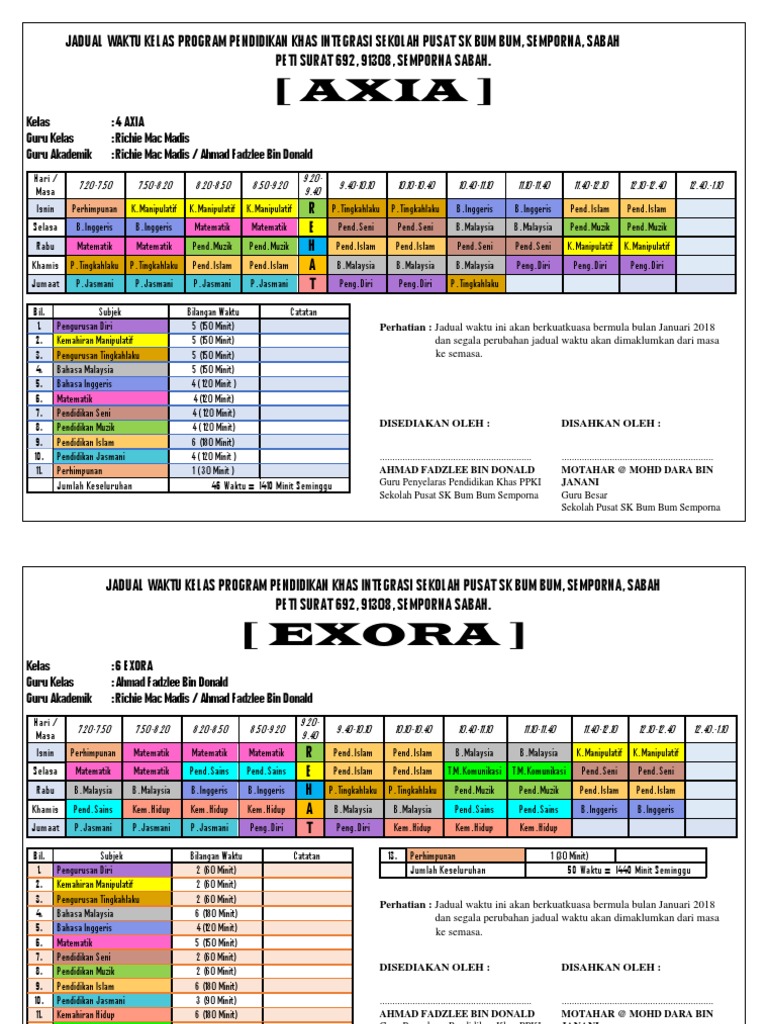 Jadual Waktu Kelas Upin Ipin Designed By Cikgu Atos Pdf